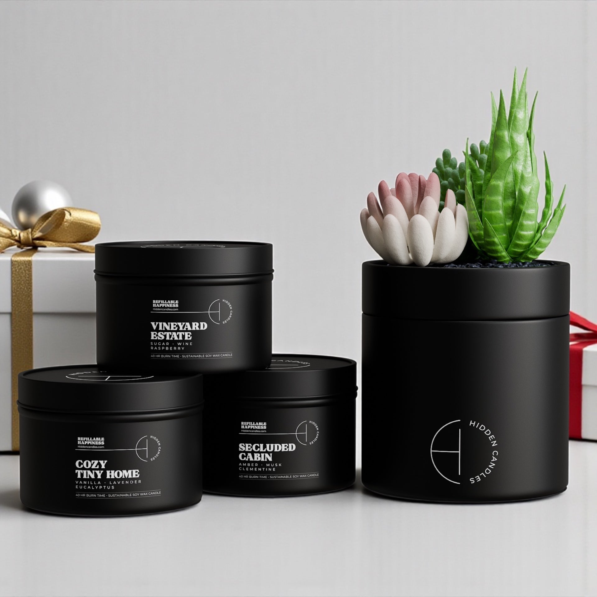 A seasonal set featuring our ceramic succulent vessel with 3 cozy fall candle refills.
