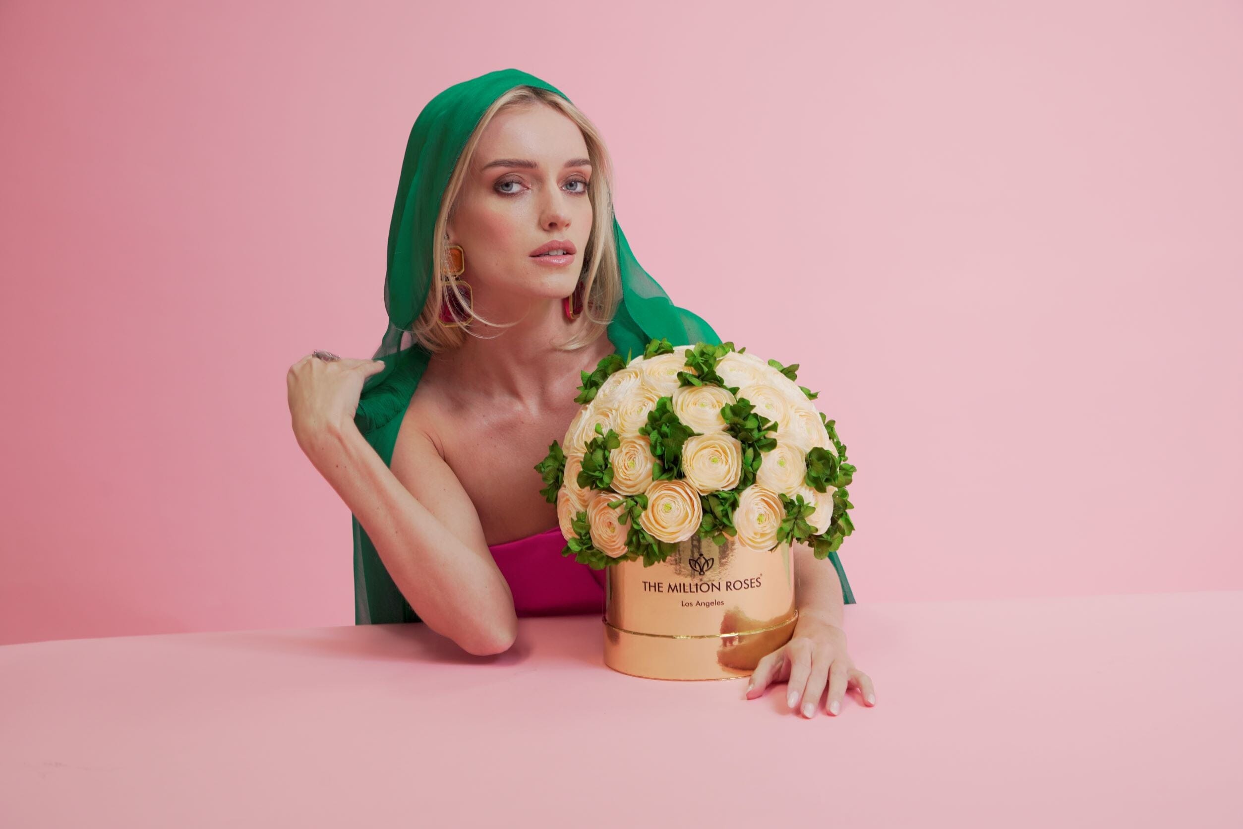 A fusion of flowers that showcases sustainable luxury and jubilance. The Million Roses Classic Box brings together medley of peach Persian buttercups and charming green hydrangeas to effortlessly capture opulence. Resting in a smooth, hand-crafted black box, this bouquet is suited to be a special occasion gift or an everyday treasure in an entryway or living space. The brightness and zest of the naturally preserved flower arrangement will remain fresh and extravagant for at least 3 years.