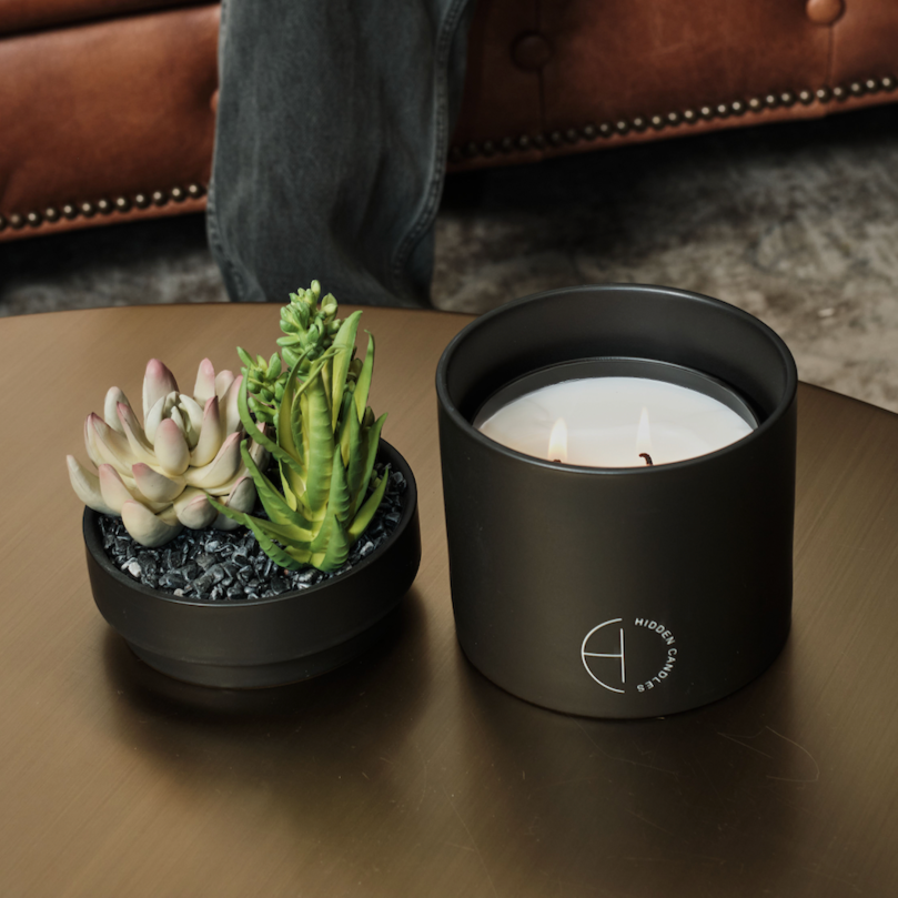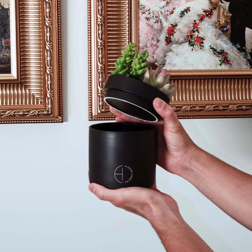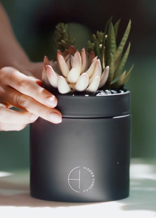 A luxury faux succulent with a removable lid for our custom, all natural refillable candles.